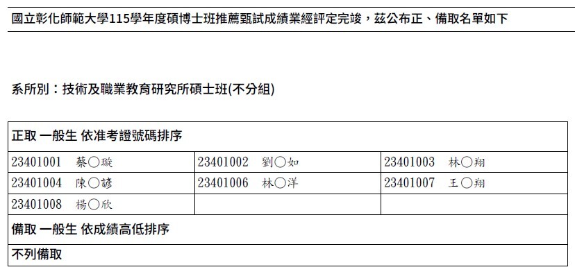 2.正備取生報到通知單(含擇優免複試直接錄取者)於11月21日以限時郵件寄出,正備取生錄取通知單另E-mail至考生登錄報名系統之電子信箱。